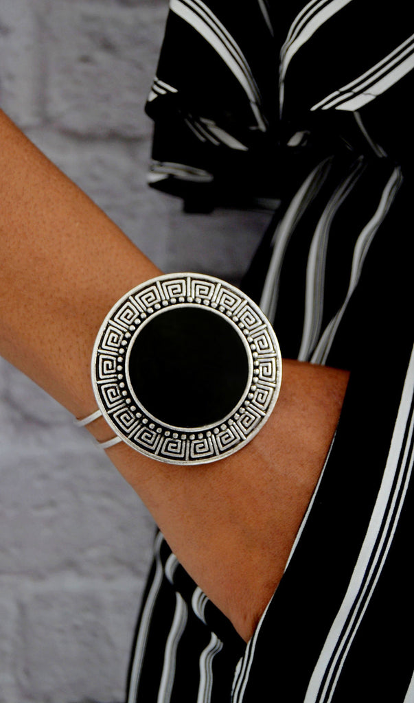 Women's Fashion Silver Cuff Bracelet With Black Stone Inset