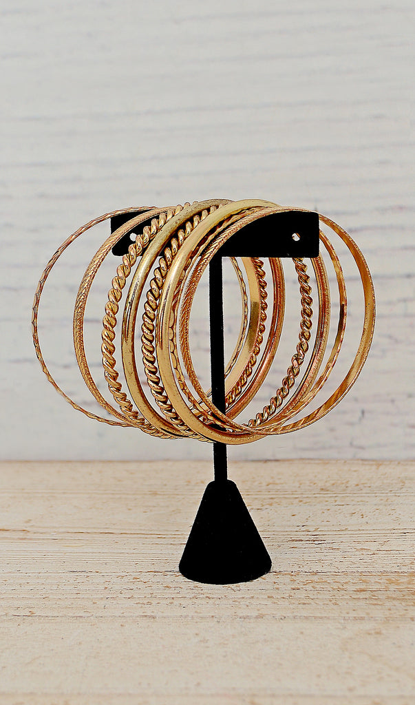 Style# GoldB-002 This fashionable 6 piece bangle set from Kim Rogers is made to polish off any outfit, no matter how lavish or laid back. This bangle set is easy and light on the wrist