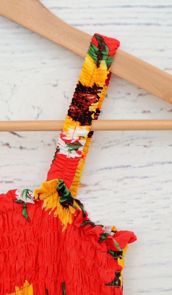 Women’s Cute Sleeveless Red Dress With Sunflowers