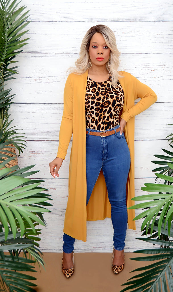 Women's Mustard Yellow Open Front Cardigan - Cute Tops